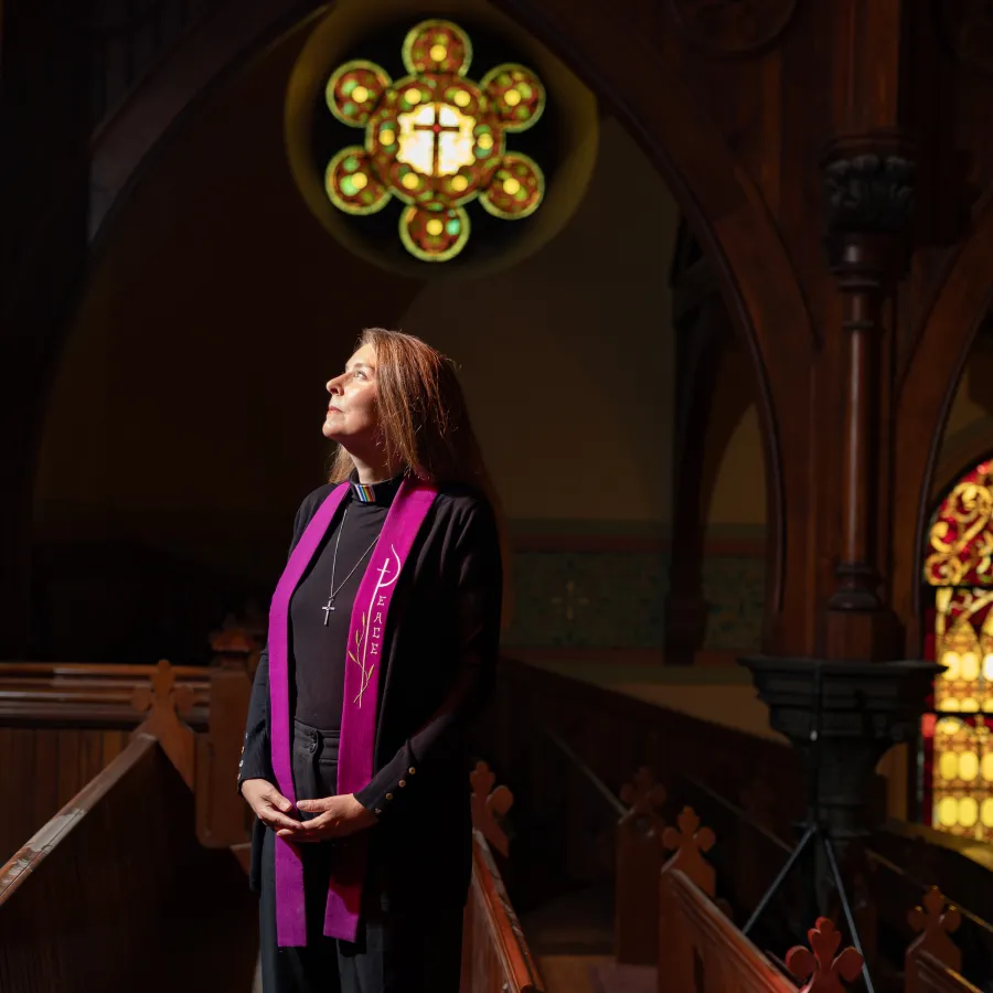 Today, the Rev. Sarah Buteux ’95 is preaching love and justice as pastor at the historic First Churches of Northampton. Photograph by Jessica Scranton